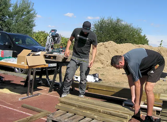 Vorbereitungen für den Aufbau des Spieleturms.